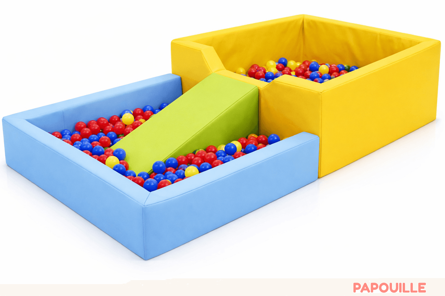 Les modules de la piscine à balles pour enfant sont additionnels et permettent de ramper, glisser, grimper, sauter en créant un circuit.
