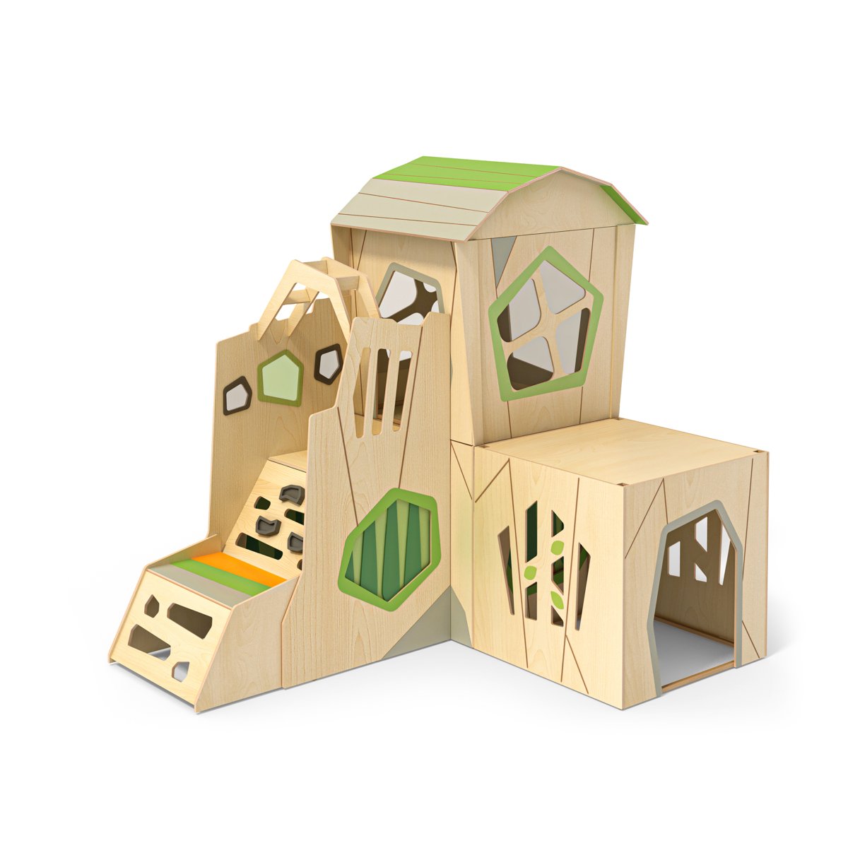 Offrez aux enfants un espace de jeu immersif et sécurisé avec cette maison de jeu modulable en angle. Composée de 4 modules interconnectés, cette structure polyvalente invite à la découverte, à la créativité et aux jeux de rôles en groupe. Avec ses parois en multiplex de peuplier finition érable, elle allie robustesse et esthétique naturelle, idéale pour s'intégrer harmonieusement aux espaces éducatifs modernes.
