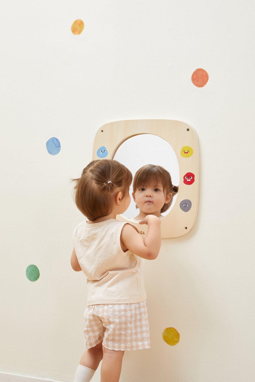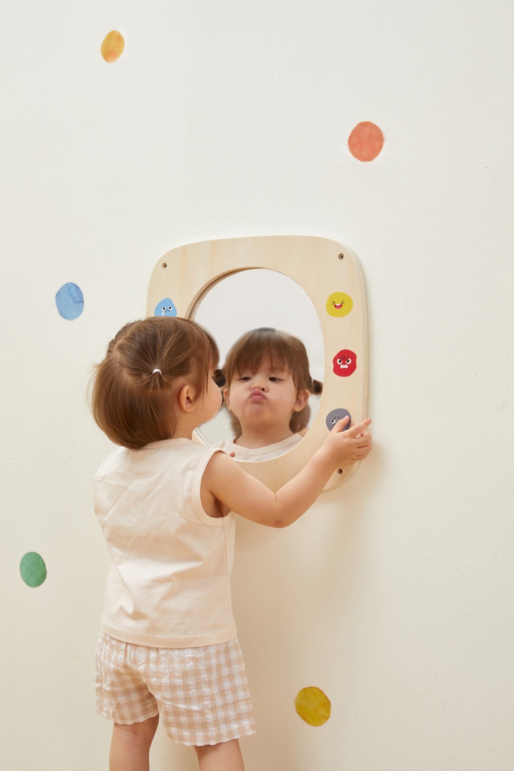 En imitant ces expressions et en les comparant à leur reflet, les enfants développent progressivement leur conscience de soi, leur compréhension des émotions et leur capacité d’expression. Ce jeu simple mais pédagogique favorise également la coordination des muscles du visage et enrichit les interactions avec leurs camarades et éducateurs.