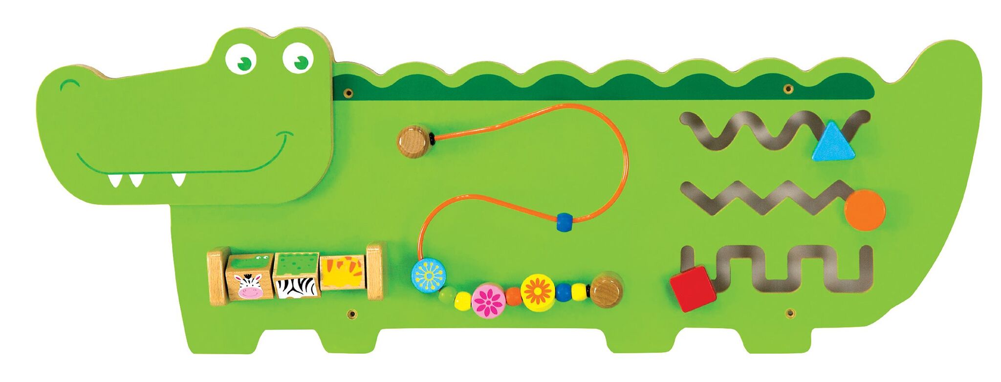 Ce panneau mural d'activités Croco est excellent pour le développement de la coordination œil-main, du contrôle des doigts et de la motricité fine.