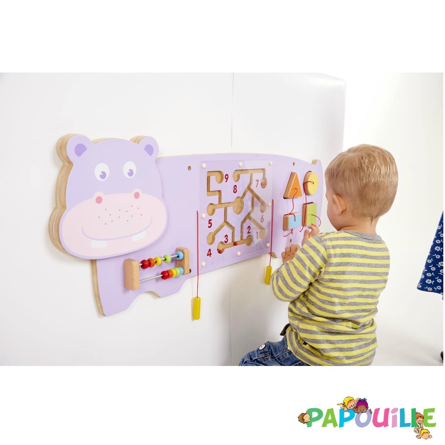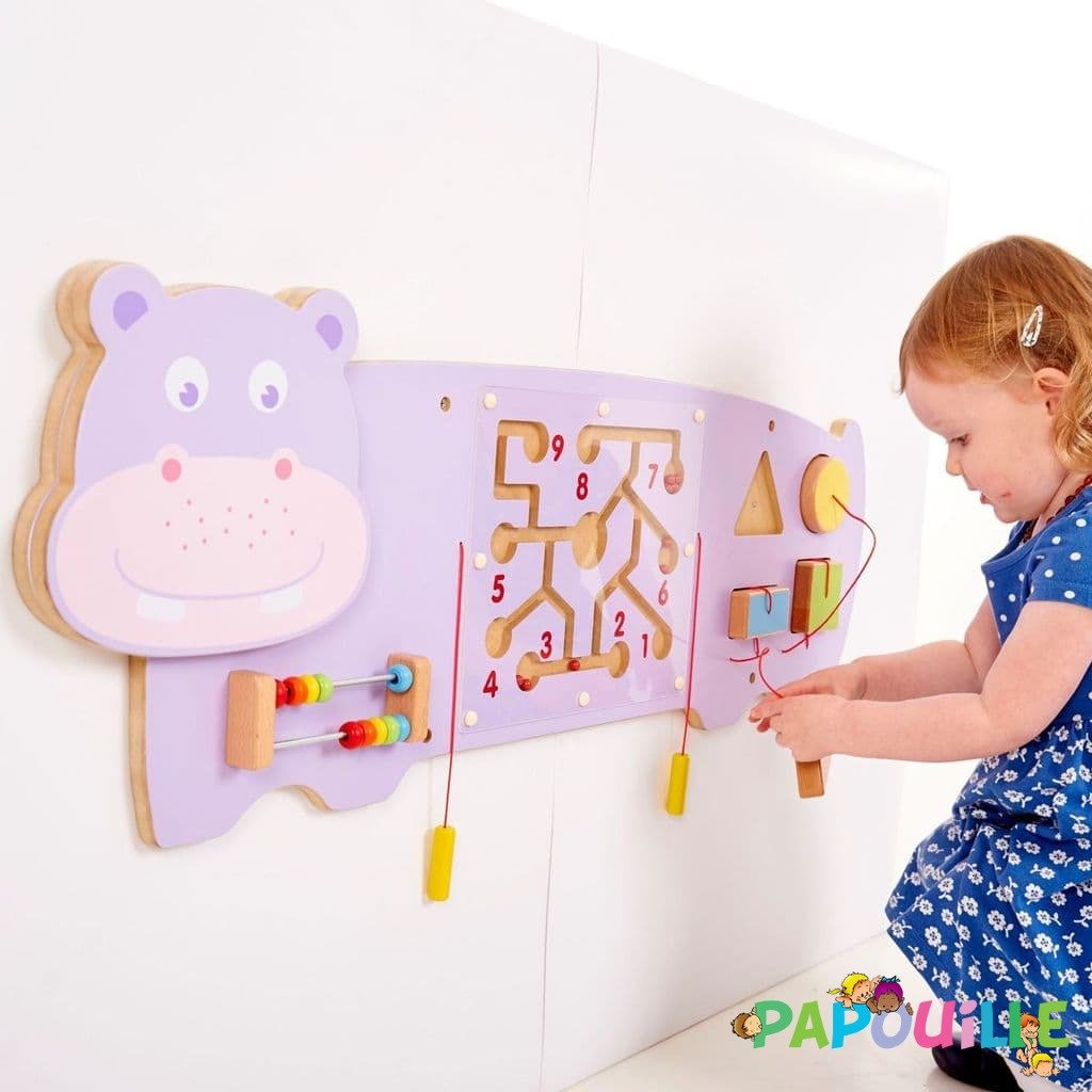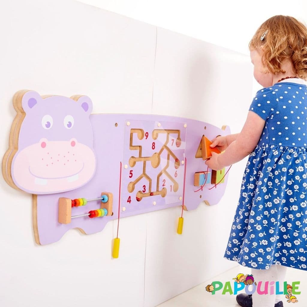 Le panneau mural d'activités Hippo est visuellement époustouflant, très décorative, il saura habiller votre crèche, ou votre intérieur.