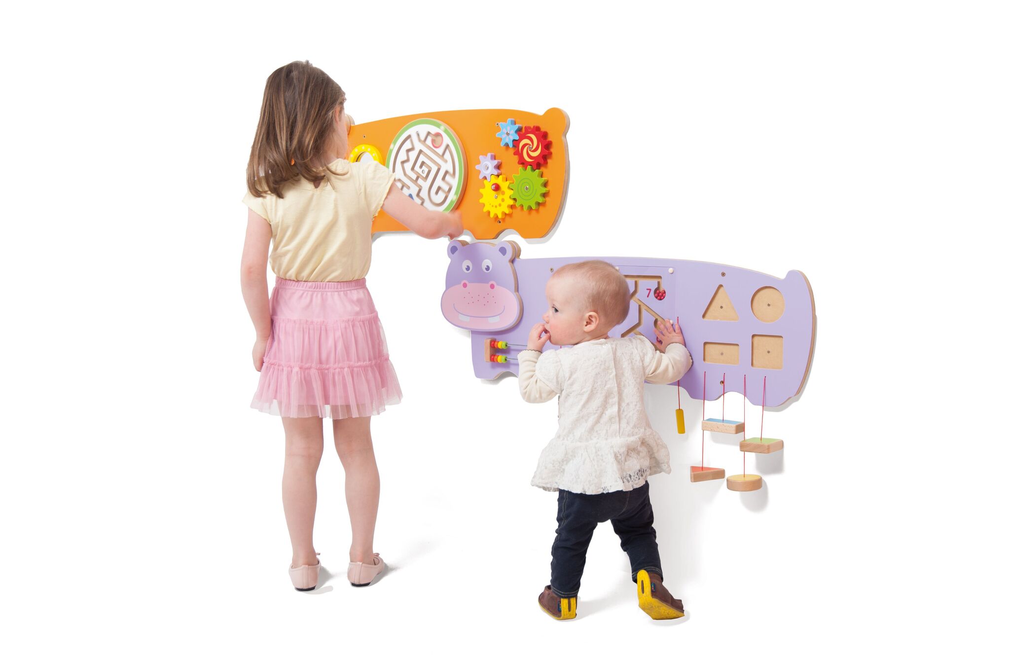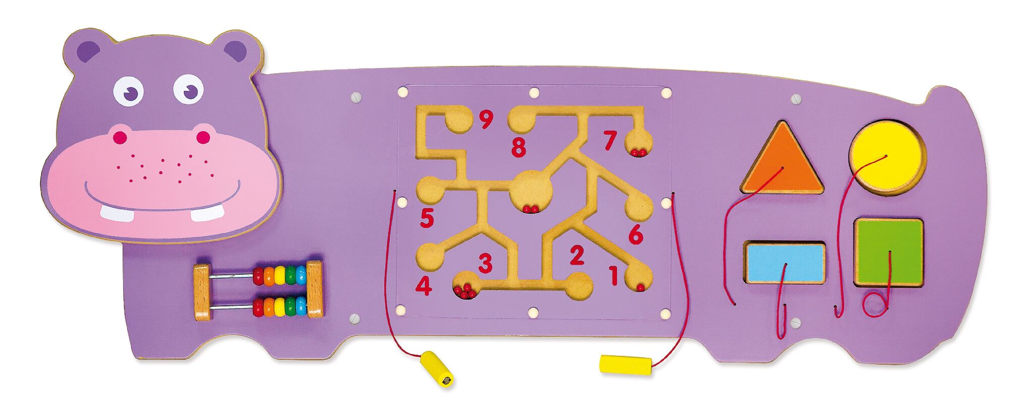 Ce panneau mural d'activités Hippo est excellent pour le développement de la coordination œil-main, du contrôle des doigts et de la motricité fine.
