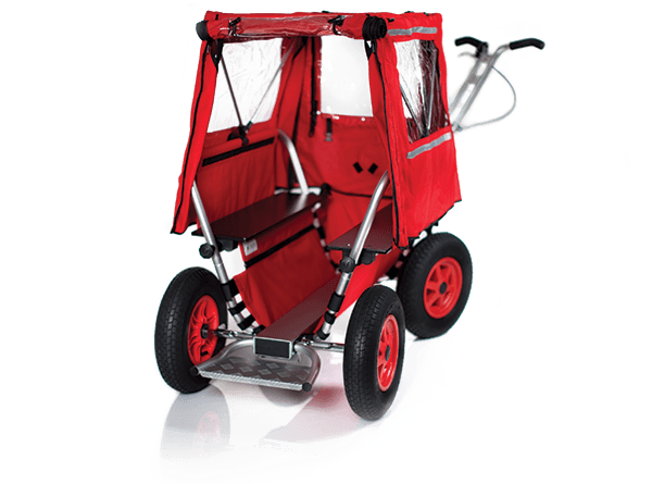 Dotée de fenêtres latérales transparentes pour garder un œil sur les enfants et de bandes réfléchissantes, elle renforce la sécurité lors des balades en fin de journée. Pratique, elle se range dans un sac compact pouvant s'accrocher au cadre du wagon, toujours à portée de main.
