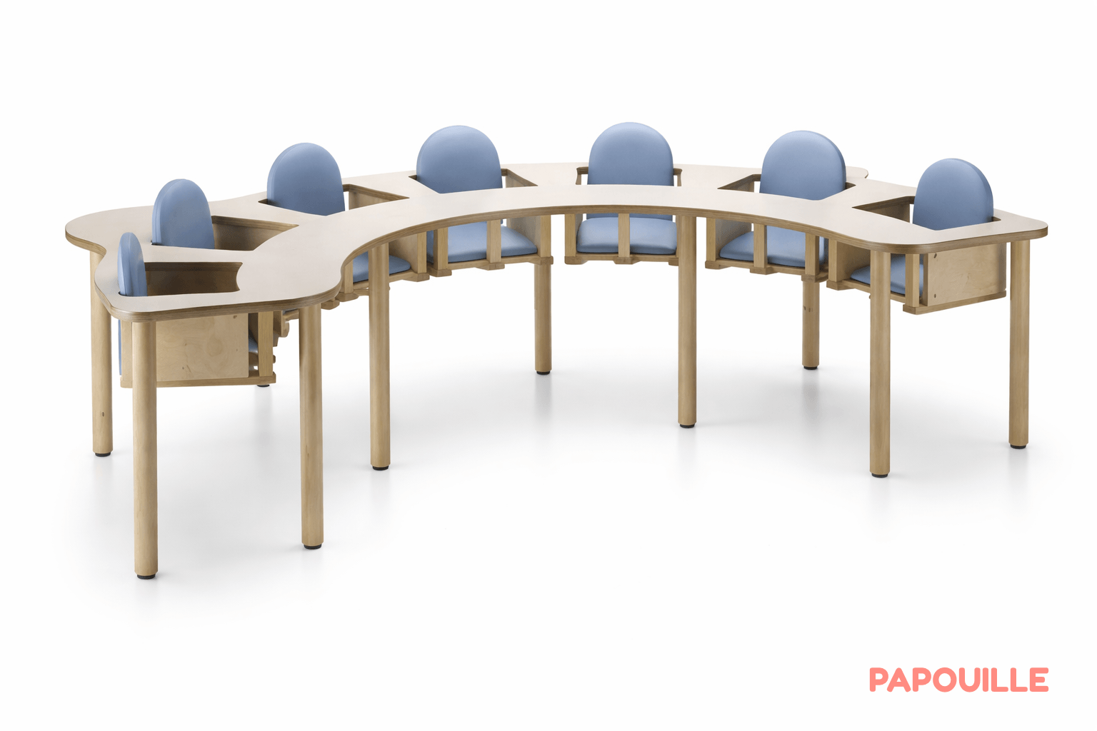 Idéale pour les moments de repas, d’activités ou d’échanges en petits groupes, cette grande table 7 places a été pensée pour s’adapter aux exigences quotidiennes des structures multi-accueil. Grâce à sa conception ergonomique et à ses assises sécurisées intégrées, elle offre un environnement à la fois rassurant et fonctionnel pour les tout-petits de 6 à 18 mois. Installé au centre, l’adulte bénéficie d’une visibilité optimale sur l’ensemble des enfants, favorisant un encadrement actif et bienveillant.