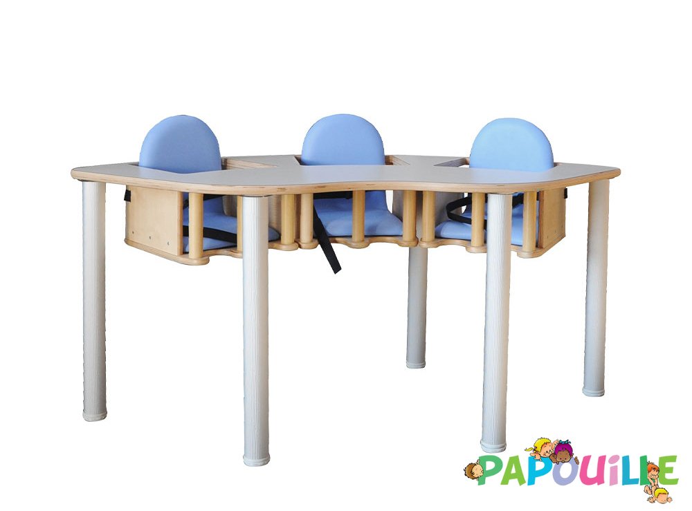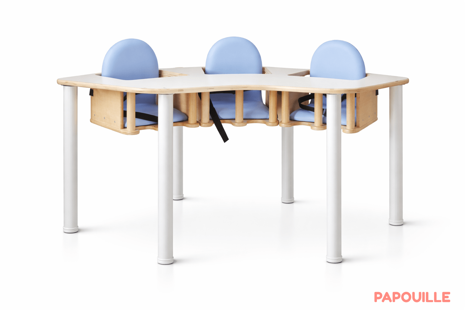 Table Chaise Haute collectivités pour crèches, multi accueil, centre de loisirs, hôpitaux.