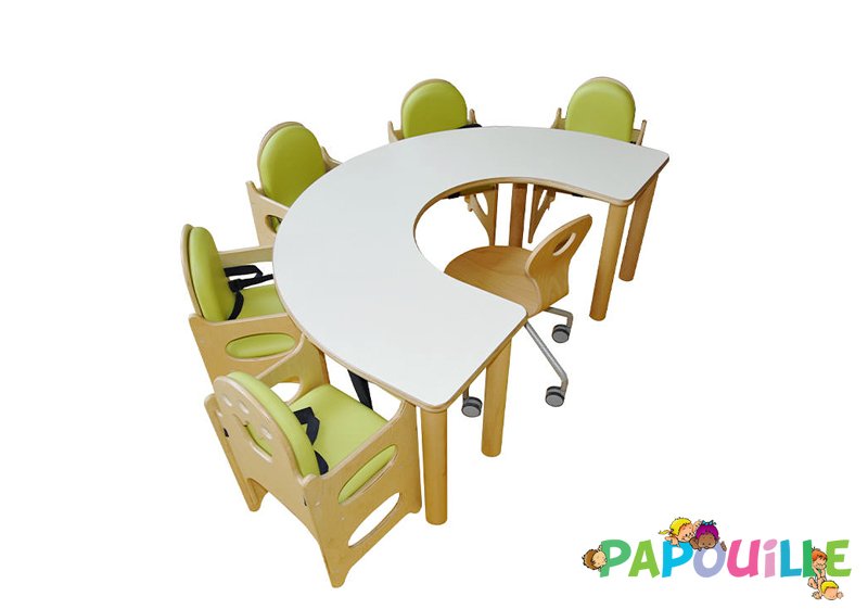 Pensée pour répondre aux exigences des crèches, micro-crèches et autres établissements d'accueil du jeune enfant, cette table multifonction accueille jusqu’à 5 bébés de 6 à 18 mois pour les temps de repas, d’activités ou de jeux. Robuste et esthétique, elle offre un espace convivial qui favorise l'autonomie des tout-petits tout en simplifiant le quotidien des professionnels.