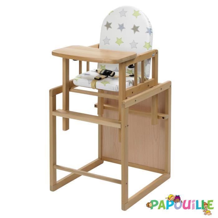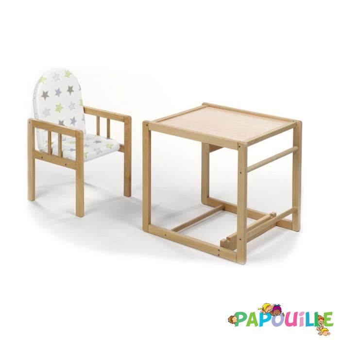 La chaise haute NICO est transformable en chaise basse ou en table en bois.