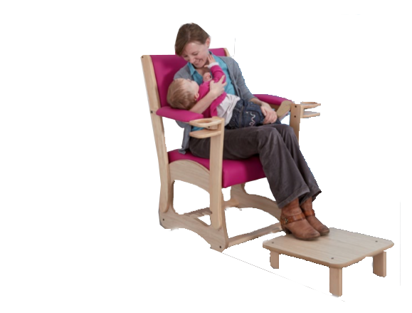 Fauteuil d'allaitement en bois avec repose pieds Framboise