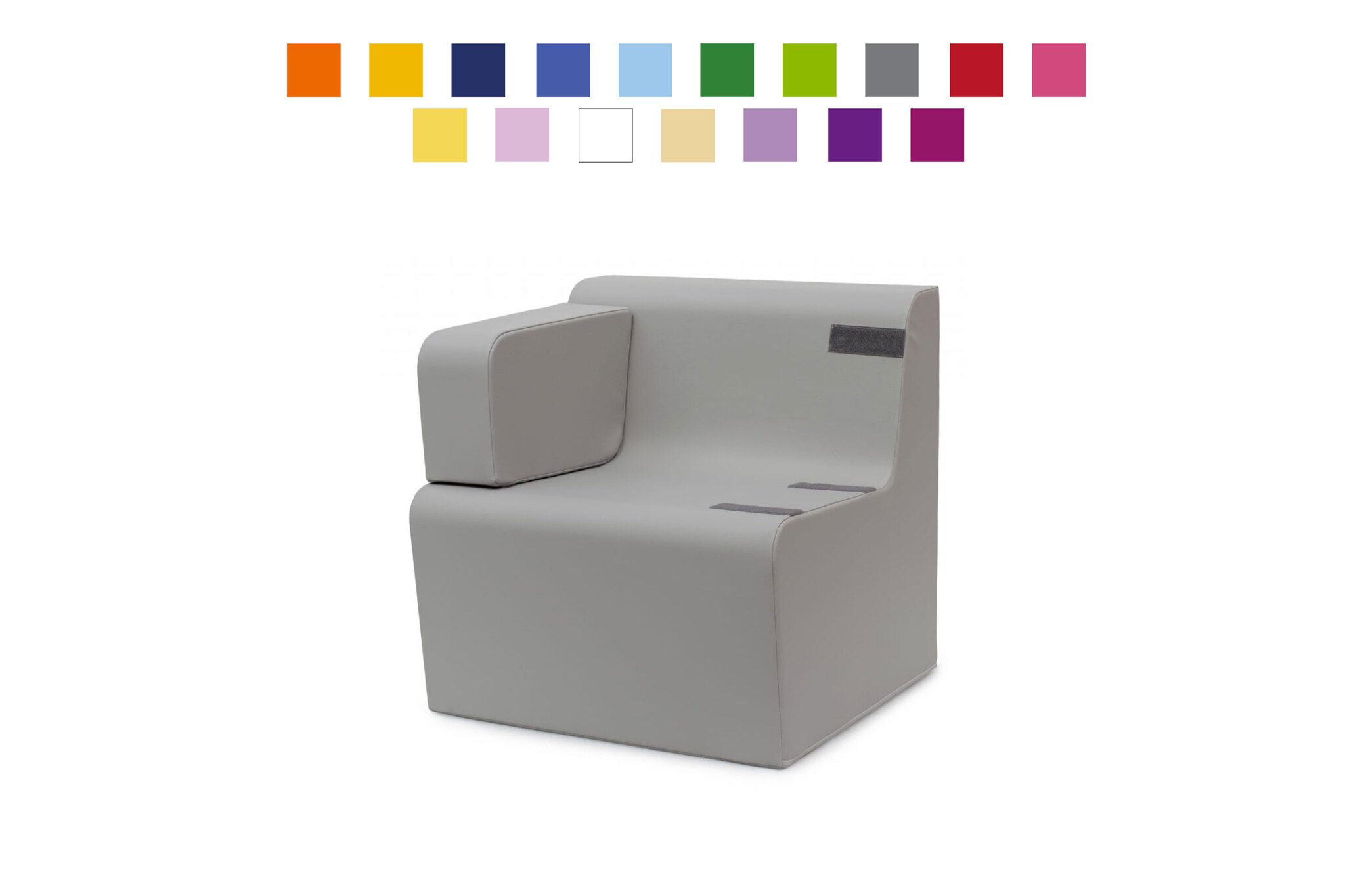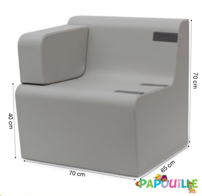 Le dessous antidérapant assure une excellente stabilité au sol, minimisant les mouvements involontaires lors des manipulations. Les finitions soignées, telles que le fil polyester haute résistance et le système de fermeture sécurisé, protègent les enfants en empêchant tout accès à la mousse interne. Conforme à de nombreuses normes européennes, ce fauteuil est un investissement fiable et pérenne pour tout lieu d’accueil petite enfance.