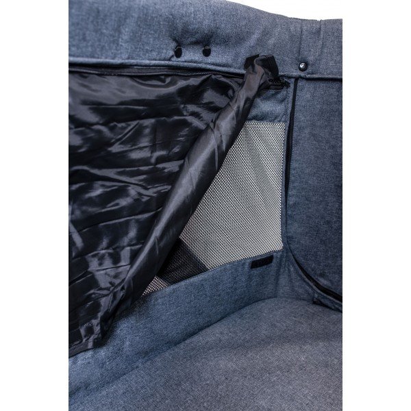 La poussette possède un grand compartiment de rangement et six poches pour garder à portée de main tout le nécessaire. Les sièges sont amovibles pour un espace modulable selon les besoins. Elle a des panneaux en maille pour une meilleure circulation de l’air, avec option de fermeture en cas de vent ou de pluie. La poussette est pliable rapidement, parfait pour le stockage ou le transport en voiture. Son tissu est en PET recyclé, sans PVC, pour un environnement plus sûr pour les enfants.