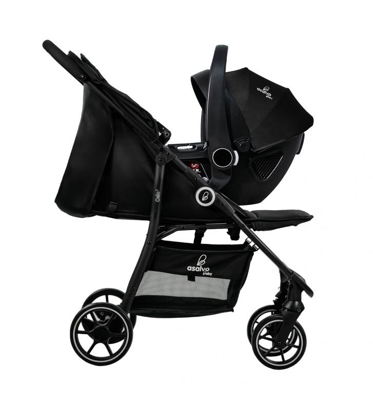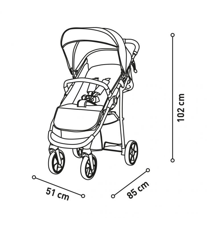 Cette poussette inclut un châssis, un hamac, et un siège-auto assorti pour une polyvalence totale.