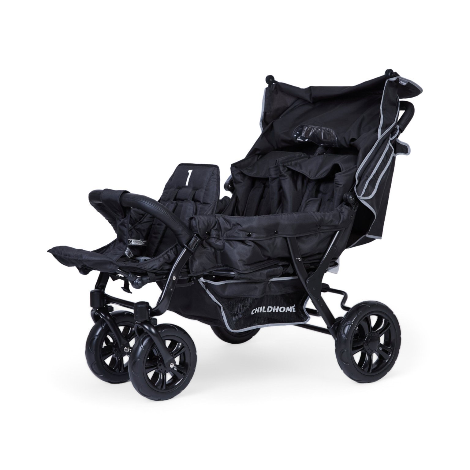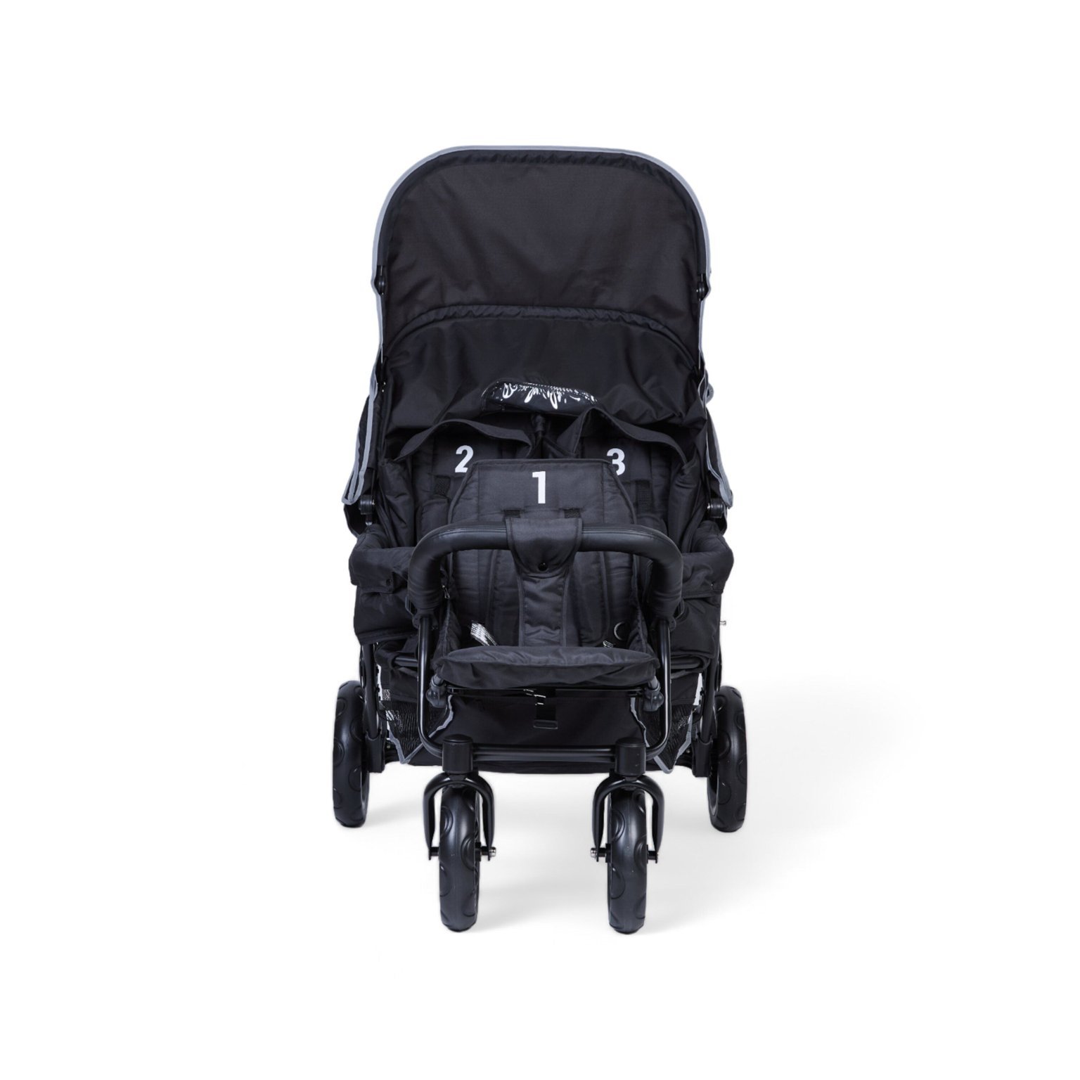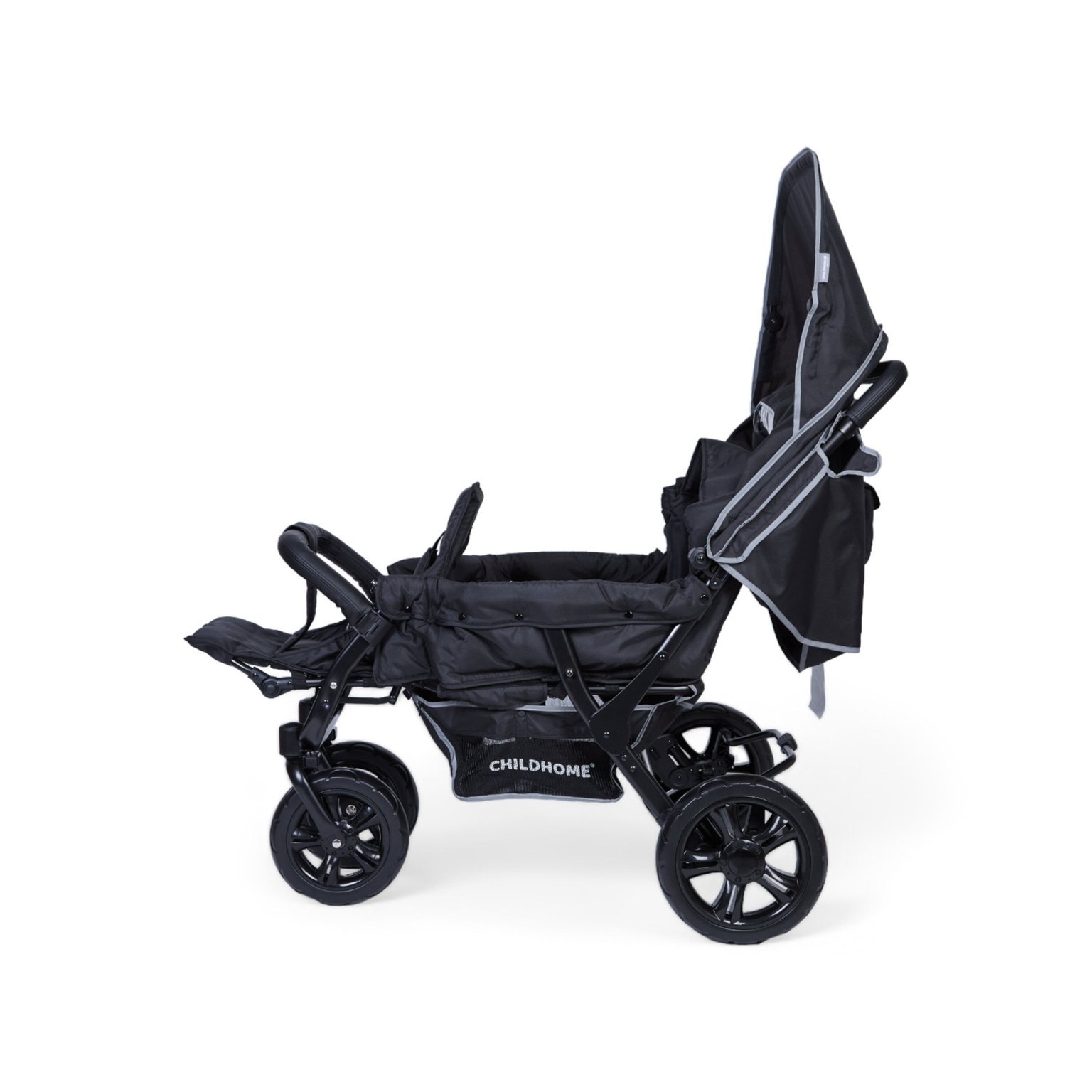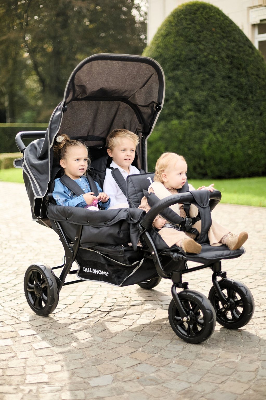Poussette triple Childhome – 3 enfants – Noire + Housse de pluie + Pare-soleils