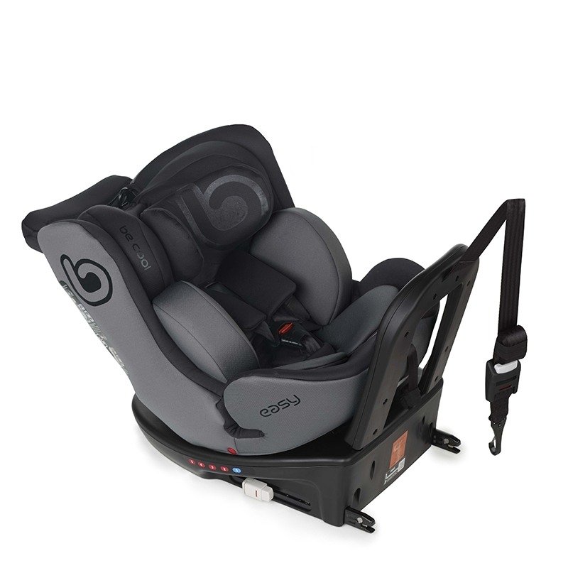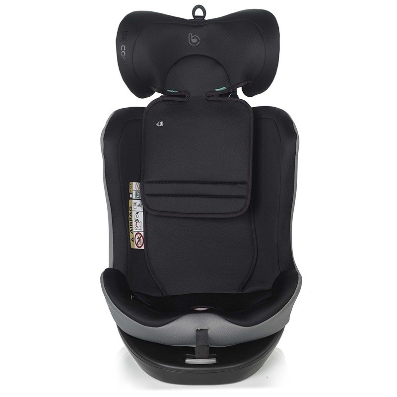 Sa rotation à 360 degrés, facilitée par un système d’ancrages Isofix et un Top-Tether attaché à la barre anti-rebond, permet une installation simplifiée et une transition aisée entre les positions dos et face à la route. En position dos à la marche, le siège est équipé d’un coussin amortisseur arrière, réduisant les impacts en cas de collision pour une protection maximale.