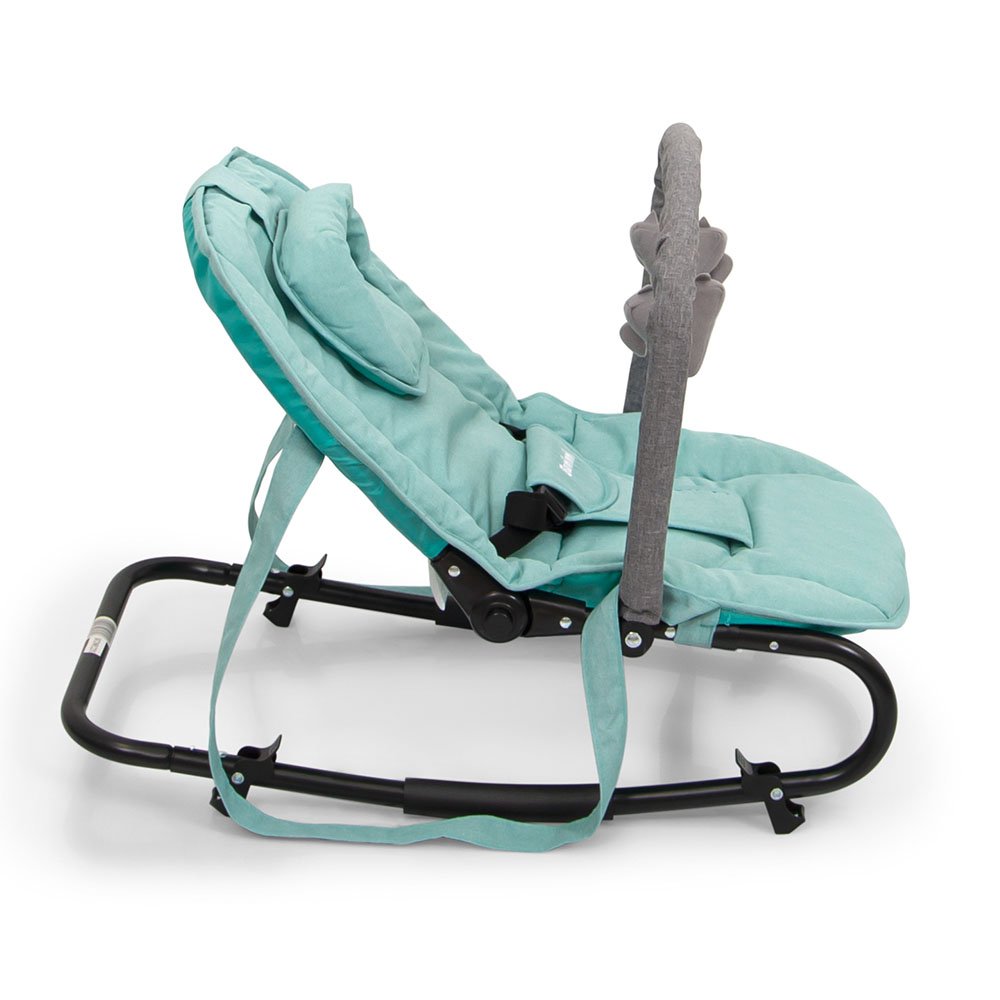Confort et Sécurité : Le transat est équipé d'un harnais de sécurité à 3 points et d'un coussin de tête amovible.