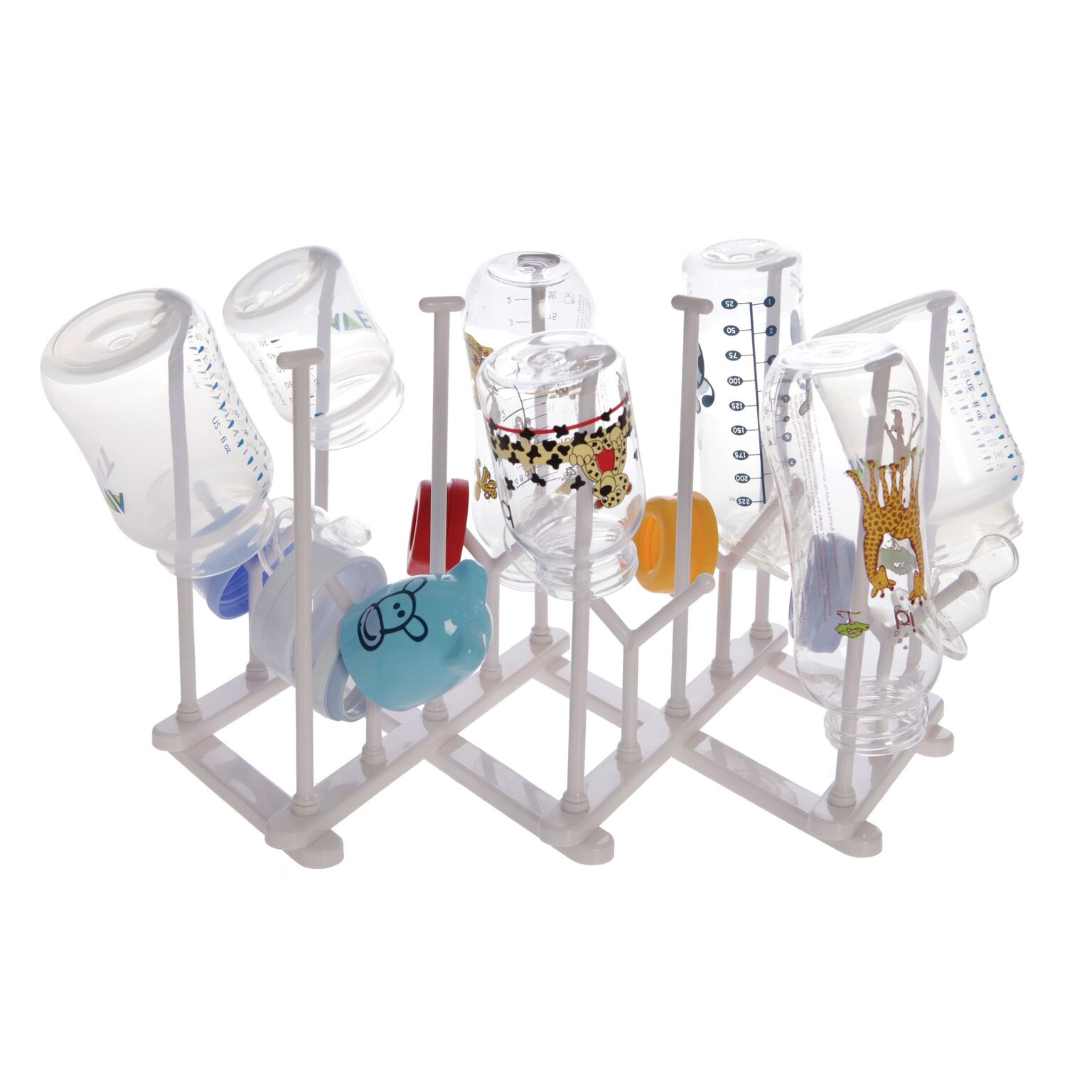 Sa structure innovante avec de multiples branches permet de suspendre biberons, tétines, bagues et autres petits accessoires, facilitant ainsi leur séchage à l'air libre. Avec son design compact et épuré, il se fond dans n'importe quelle cuisine, occupant un minimum de place sur votre plan de travail.