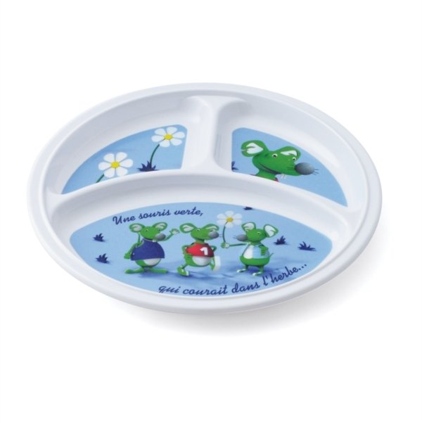 L'assiette 3 compartiments en Mélamine avec motif Souris est résistante, tant aux chocs qu'à l’abrasion.