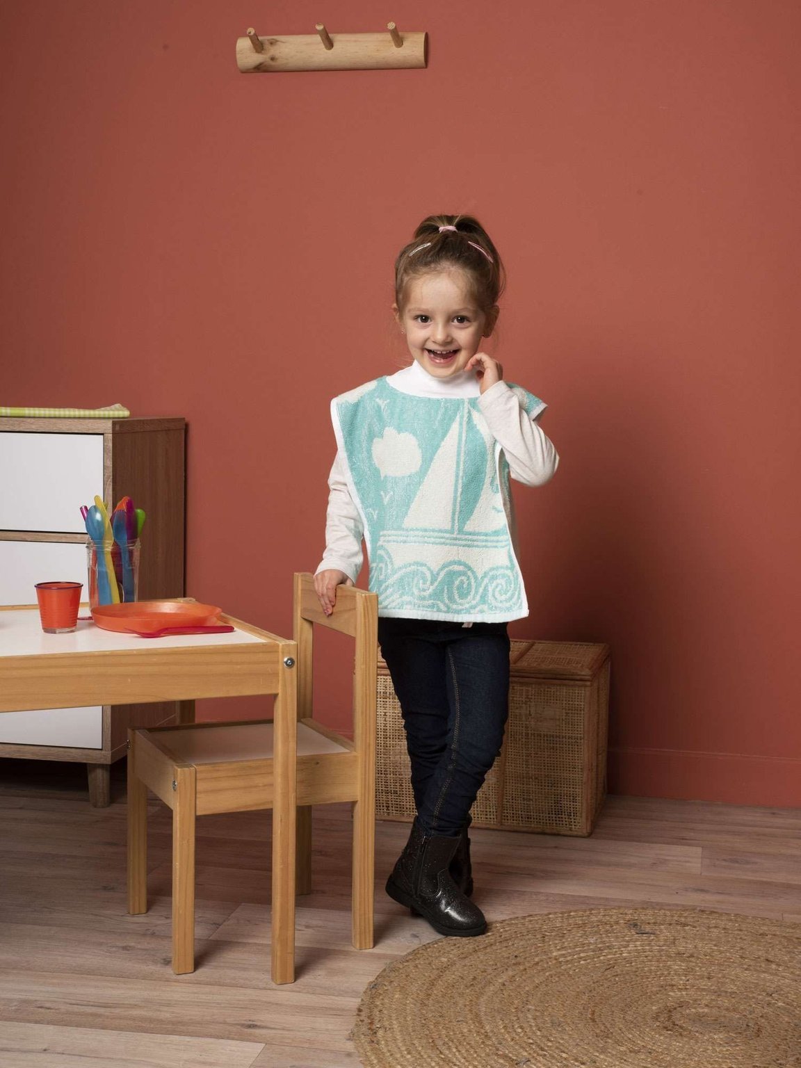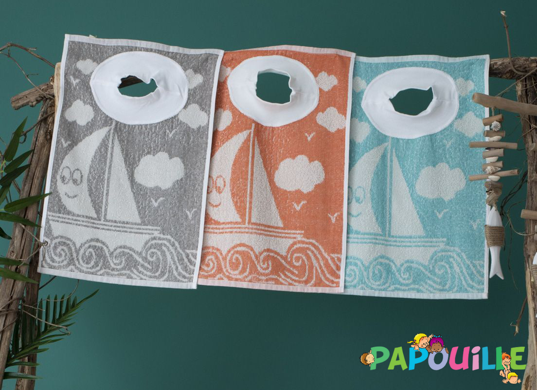 Un bavoir à motif "Bateau" à encolure large bord cote est idéal pour les collectivités.