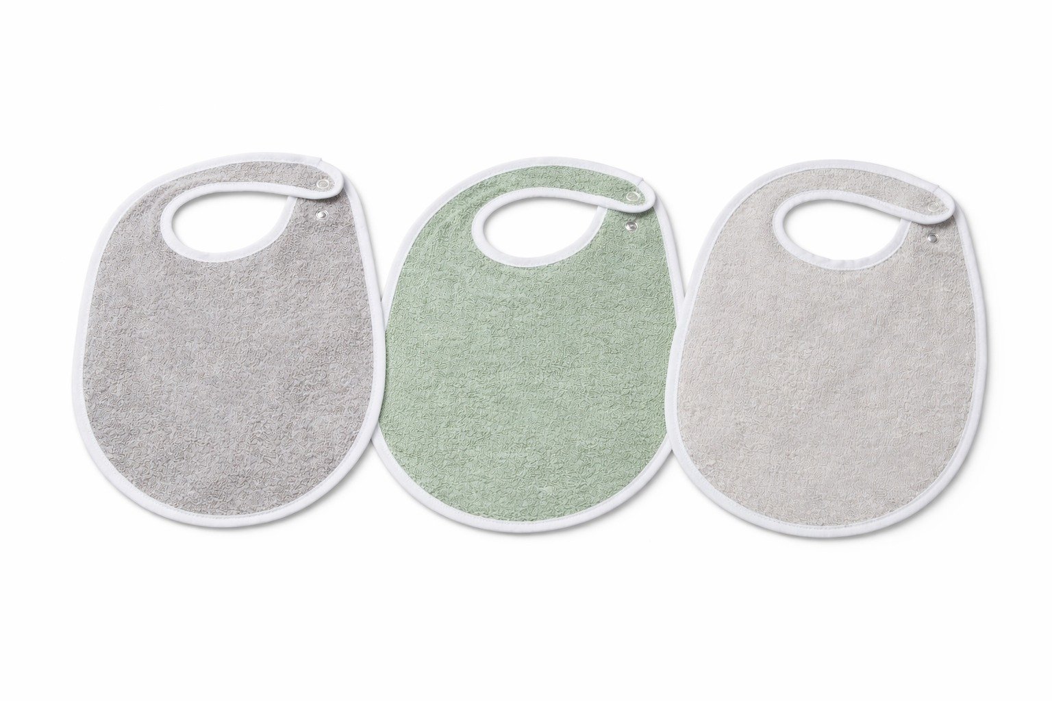 La fermeture à pression solide permet un enfilage rapide et sécurisé, facilitant le travail du personnel encadrant tout en assurant le maintien du bavoir même lors des mouvements spontanés du bébé. Son biais blanc soigné apporte une finition nette et résistante, même après de nombreux lavages.