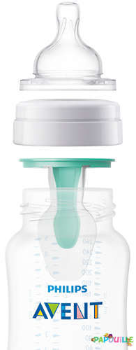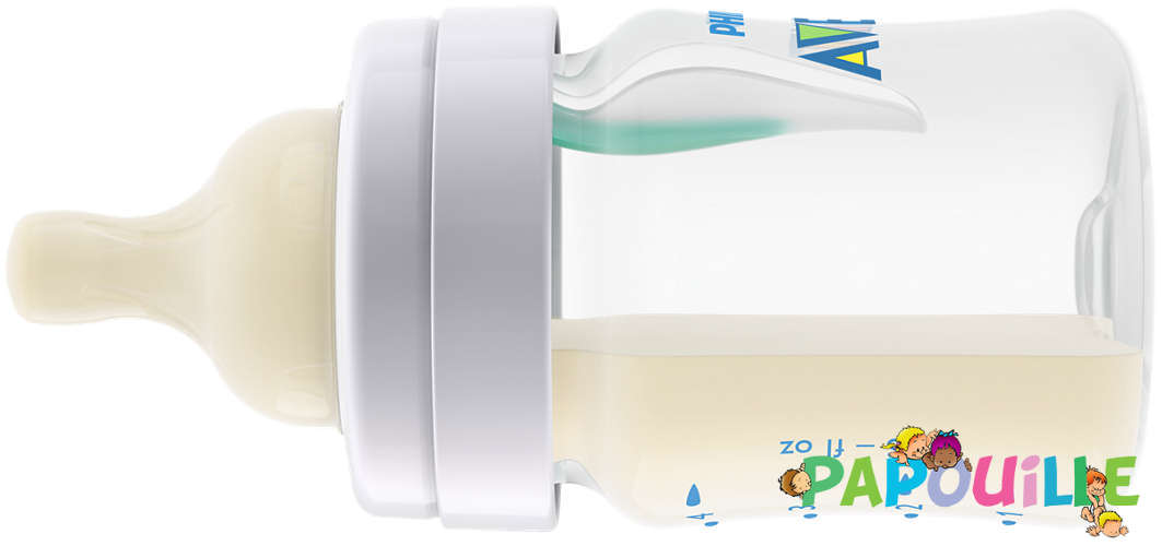 avec Tétine à Système anti-coliques avec valve AirFree conçu pour réduire l'ingestion d'air, Succion facilitée, texture rainurée évitant l'écrasement de la tétine, système anti-coliques cliniquement prouvé