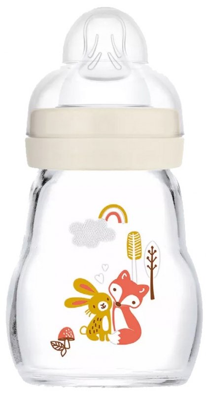 Biberon Verre 170ml 0 à 6 mois Tétine Débit 1 - Beige