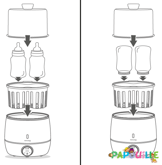 Avec le Chauffe 2 Biberons et stérilisateur on pourra sélectionner le temps souhaité de réchauffage ou