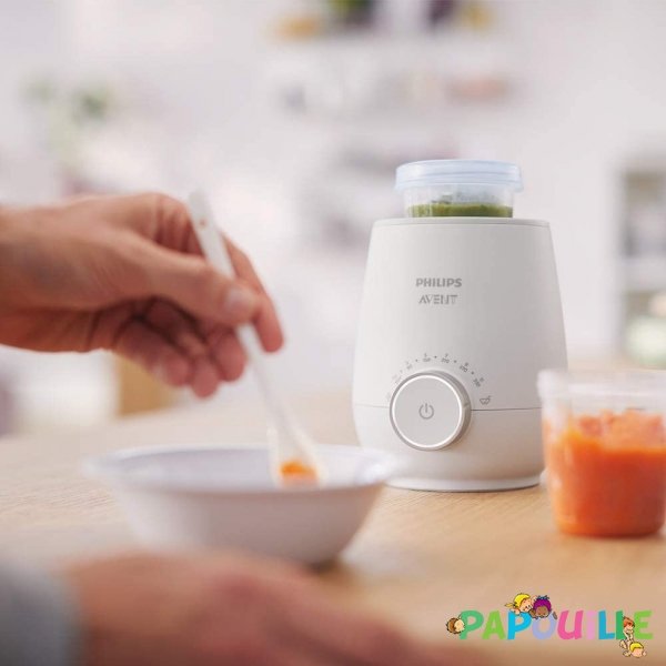 Lorsque votre bébé est prêt à passer aux aliments solides, le chauffe-biberon décongèle et réchauffe également les petits pots.