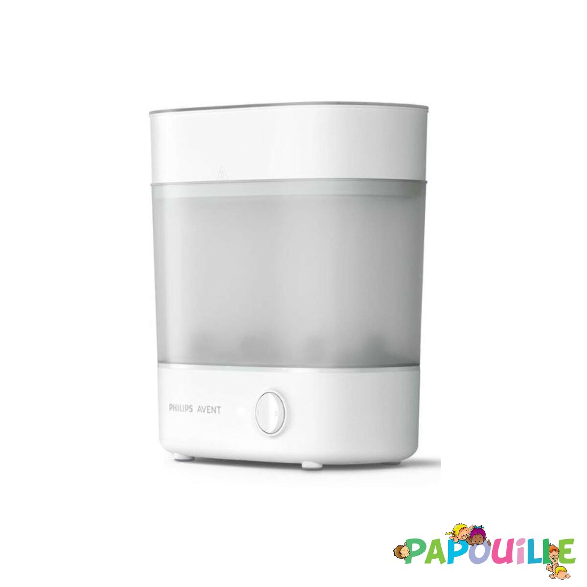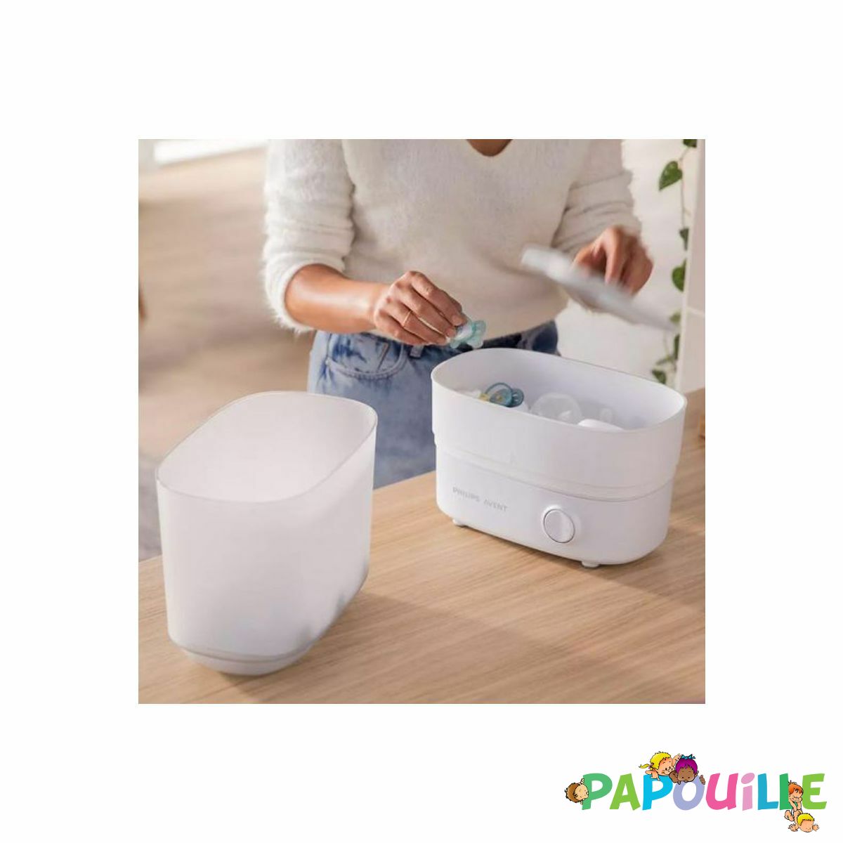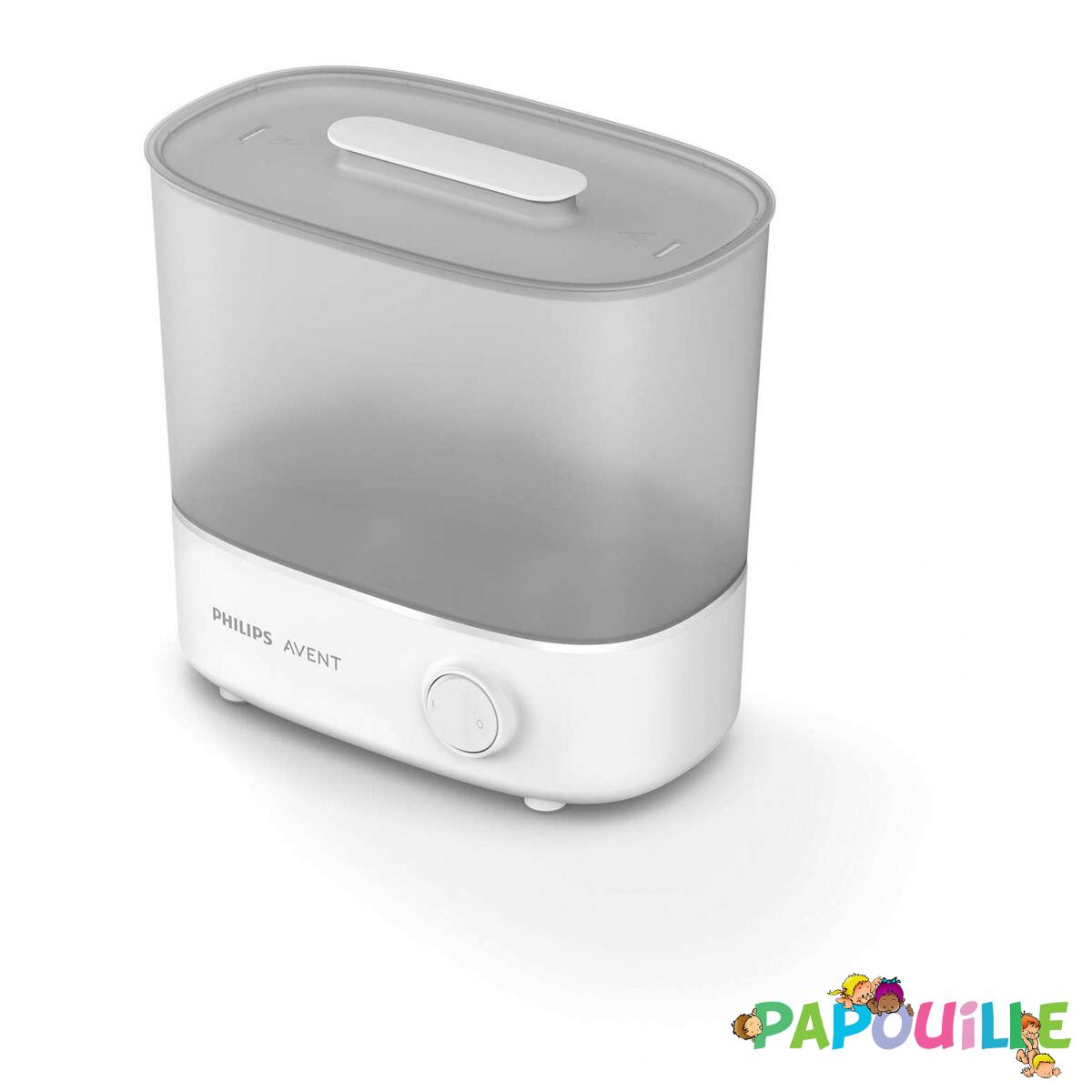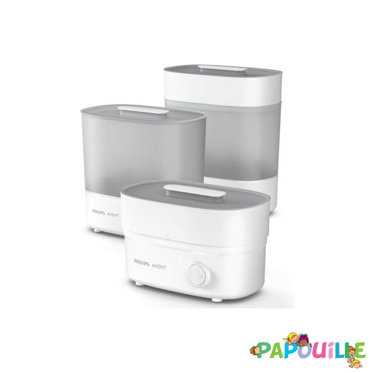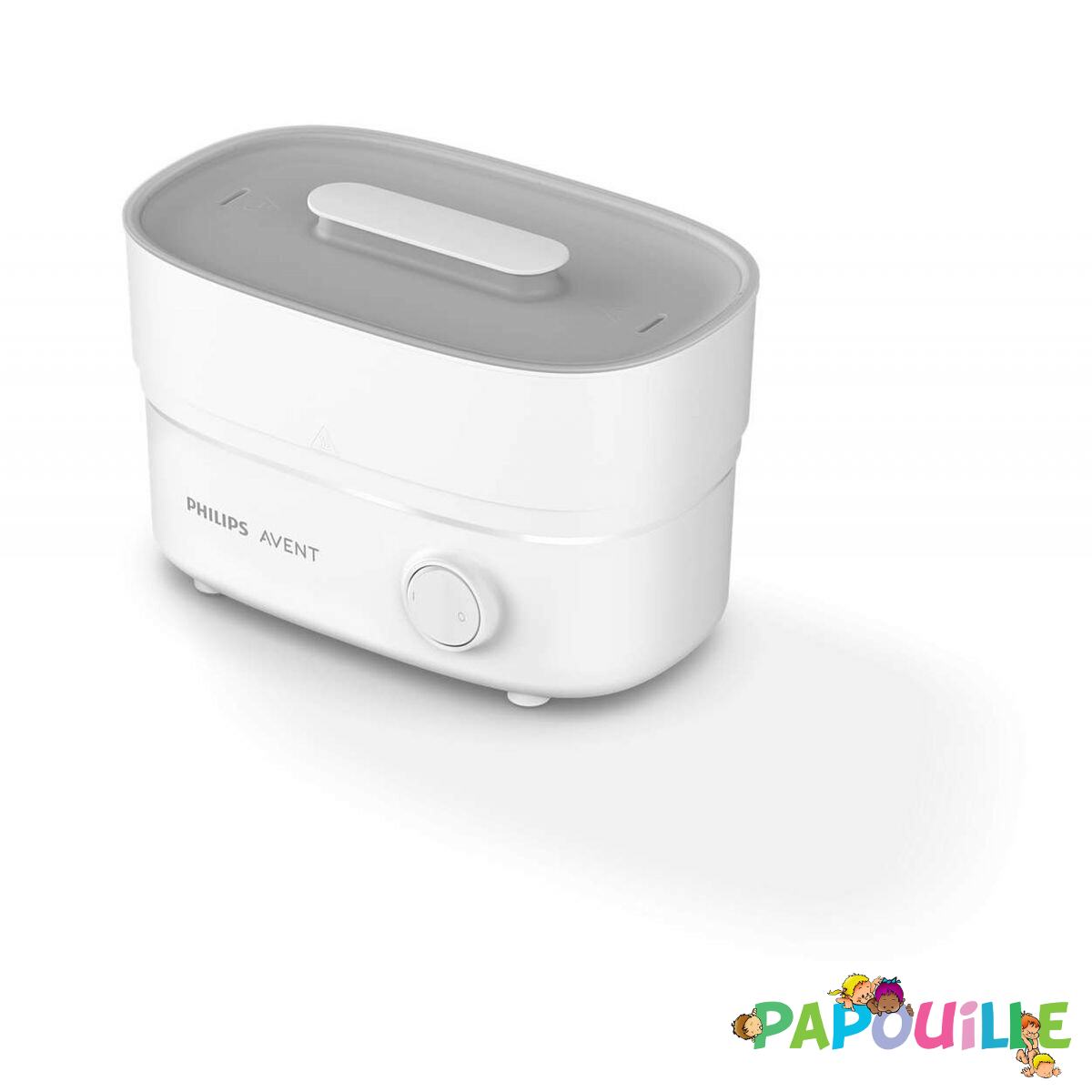 Découvrez le stérilisateur électrique 3 en 1 Philips Avent prend peu de place dans votre cuisine tout en étant parfaitement adapté aux éléments à stériliser et ce qu'il soit entièrement rempli, ou qu'il ne contienne que quelques objets de petite taille. Grâce à sa vapeur naturelle, elle élimine 99,9 % des bactéries dans les biberons mais également des les tire-laits, sucettes, etc.. Ce stérilisateur peut contenir jusqu'à 6 biberons.