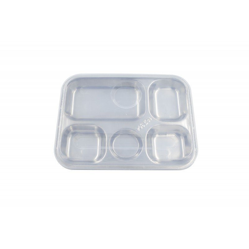Plateau 5 compartiments inox 30,5 x 23,5 x 2,5 cm avec couvercle