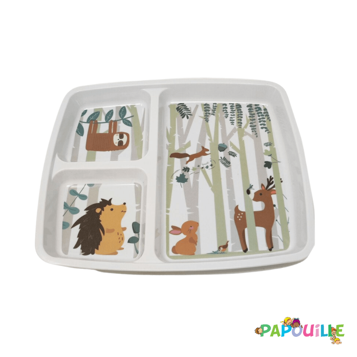 - Plateau repas 3 compartiments melamine animaux de la forêt