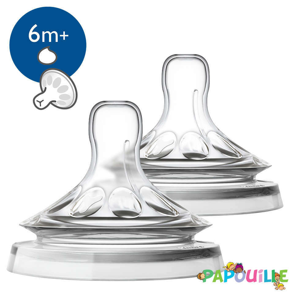 L'intérieur de la tétine présente des alvéoles et des rainures qui lui procurent de la souplesse tout en évitant qu'elle ne s'écrase, pour une tétée ininterrompue.