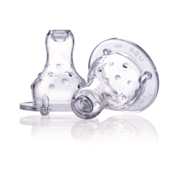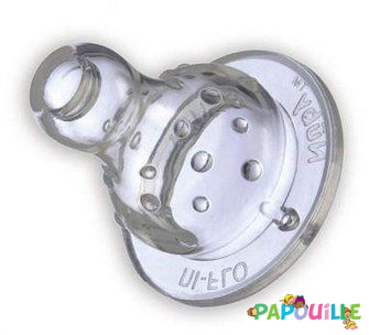 Tétine en silicone pour biberon à col standard avec système de variation de flux, qui permet à bébé de contrôler le débit du liquide qu'il boit. La tétine est équipée d'ergots afin de masser les gencives sensibles de l'enfant.